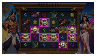當盤面上出現8個(含)以上相同符號時,即可獲得相對贏分。