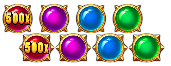 ●同時出現在主遊戲、免費遊戲中。 ●盤面出現倍數符號且該局有獲得贏分,最後加總即可獲得2~500倍的隨機倍數 ●連續Combo有機會讓倍數球隨機升級,最高500 倍。 |