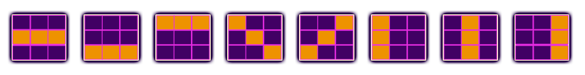 共計有三橫線、三直線、左上至右下、左下至右上等 8 條對獎線。