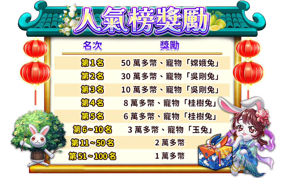 | 第32名 | FABY | 第82名 | 小飛俠兔兔 |